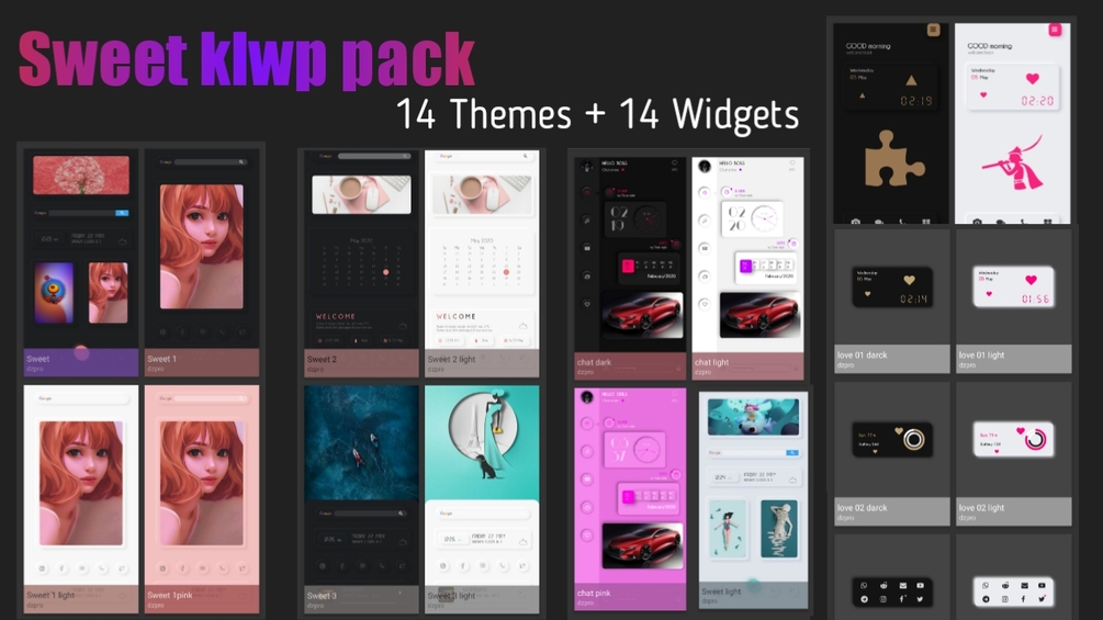 Sweet klwp pack have 14 Themes and 14 Widgets